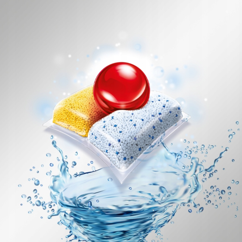 Luk emballagen tæt og opbevar kapslerne tørt for at bevare maksimal ydeevne. Få endnu bedre glans og pletfrie glas ved at kombinere med Finish Shine & Rinse Aid.