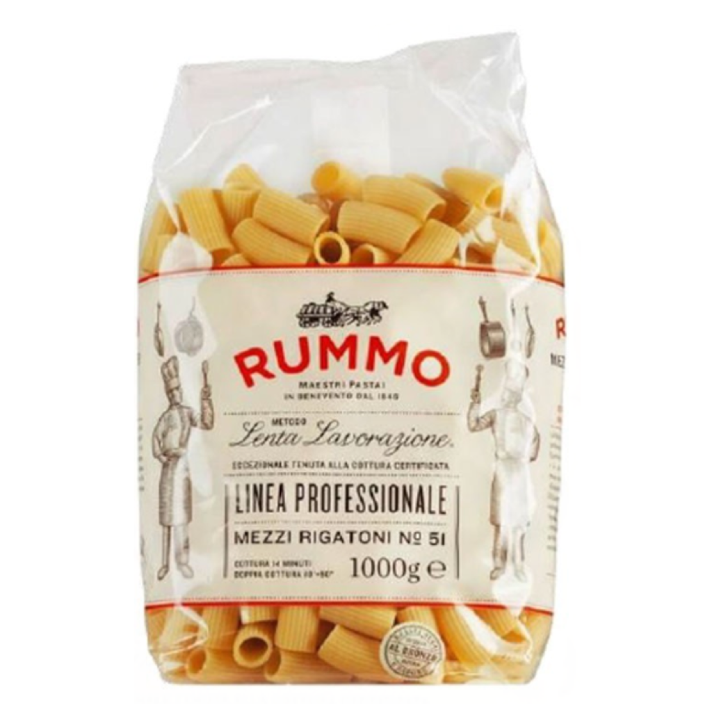 Vælg Rummo Mezzi Rigatoni n°51 - 1 kg, når du vil lave pastaretter med mere fylde, mere struktur og mere smag i hver mundfuld. Den korte, rørformede pasta med tydelige riller er skabt til at holde godt på sauce, så du får et mere intenst og harmonisk resultat på tallerkenen. Rummo fremhæver selv denne variant som særligt velegnet til tætte saucer, fordi de kan lægge sig inde i de riflede rør og give pastaen masser af karakter. Den passer derfor perfekt til ragù, kraftige tomatsaucer, cremede artiskoksaucer og klassiske ovnretter.